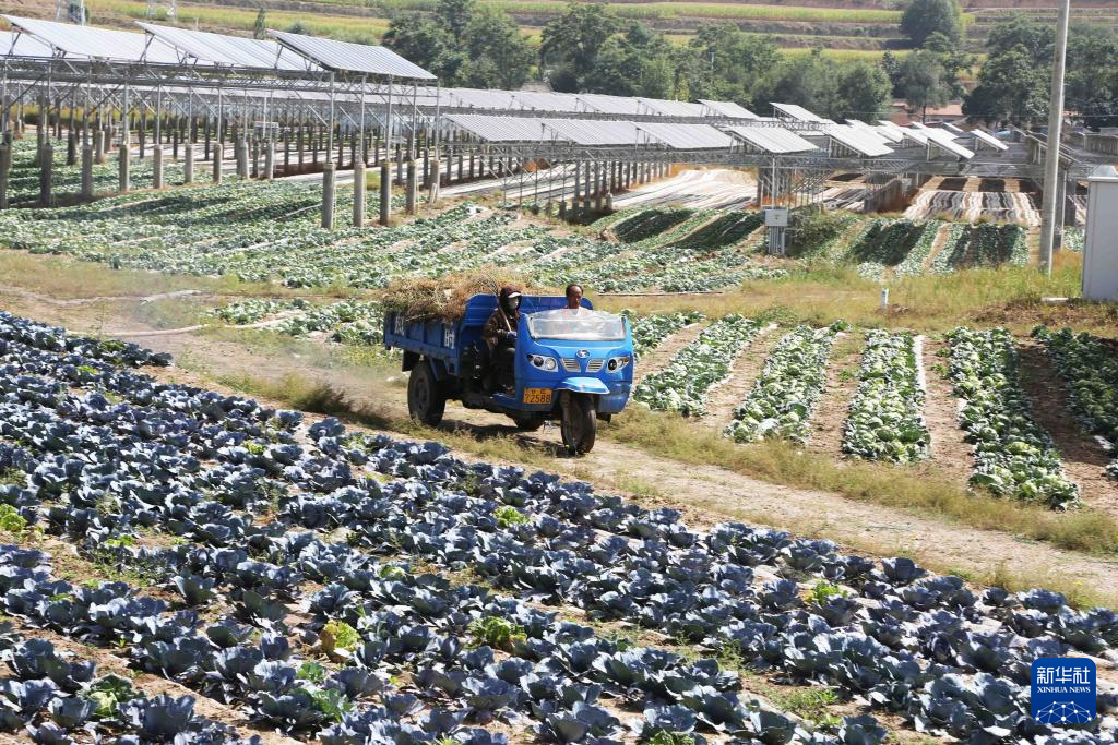 9月9日,農(nóng)民在通渭縣榜羅鎮(zhèn)四新村光伏農(nóng)業(yè)產(chǎn)業(yè)示范園的蔬菜地里勞作。新華社發(fā)(王克賢 攝)