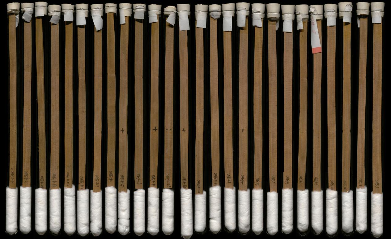 1959年,在武威市涼州區(qū)新華鄉(xiāng)磨嘴子第18號(hào)墓中,出土木簡10枚,出土?xí)r懸掛于一鳩杖之上。其內(nèi)容記載了東漢永平十五年(72年)幼伯受王杖事,并錄建始二年(前31年)九月“年七十受王杖”的詔書和和平元年(前28年)毆擊王杖主當(dāng)棄市的令。由于簡上無編號(hào),出土?xí)r次序已亂,史學(xué)界稱其為“王杖十簡”。簡長23.2-23.3厘米,寬1厘米,共有240字。松木削制、兩道編繩、先書后編、墨書隸體、字跡清晰。