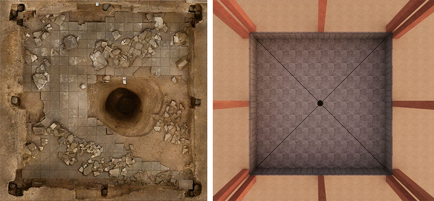 “這個(gè)方形空間邊長(zhǎng)6.5米,地面鋪了表面光滑的素面地磚,四壁貼壁磚并用鐵釘固定,地磚和壁磚縫都采用了高超的填縫技術(shù)。底部還埋有一根陶水管道,種種跡象表明這是一處蓄水裝置。”侯紅偉說(shuō)。