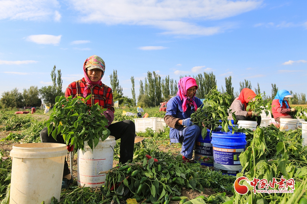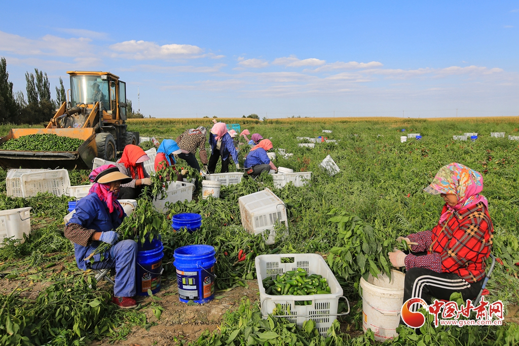 9月1日,嘉峪關(guān)市新城鎮(zhèn)長(zhǎng)城村一農(nóng)民專(zhuān)業(yè)合作社種植的子彈頭辣椒喜獲豐收,種植戶(hù)搶抓農(nóng)時(shí)采摘,農(nóng)用機(jī)械車(chē)輛穿梭于田間地頭,鄉(xiāng)村田野呈現(xiàn)出一派繁忙的景象。