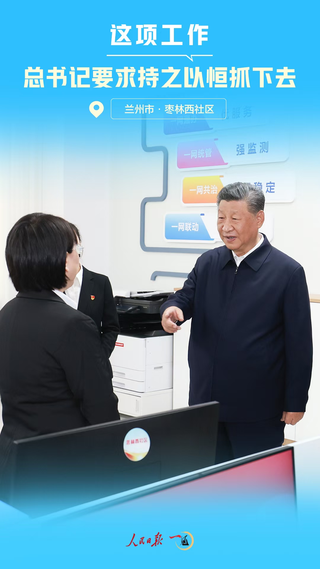 9月11日下午,習近平總書記來到甘肅省蘭州市考察。在安寧區(qū)棗林西社區(qū)黨群服務(wù)中心考察時,總書記細致詢問了落實為基層減負等情況。