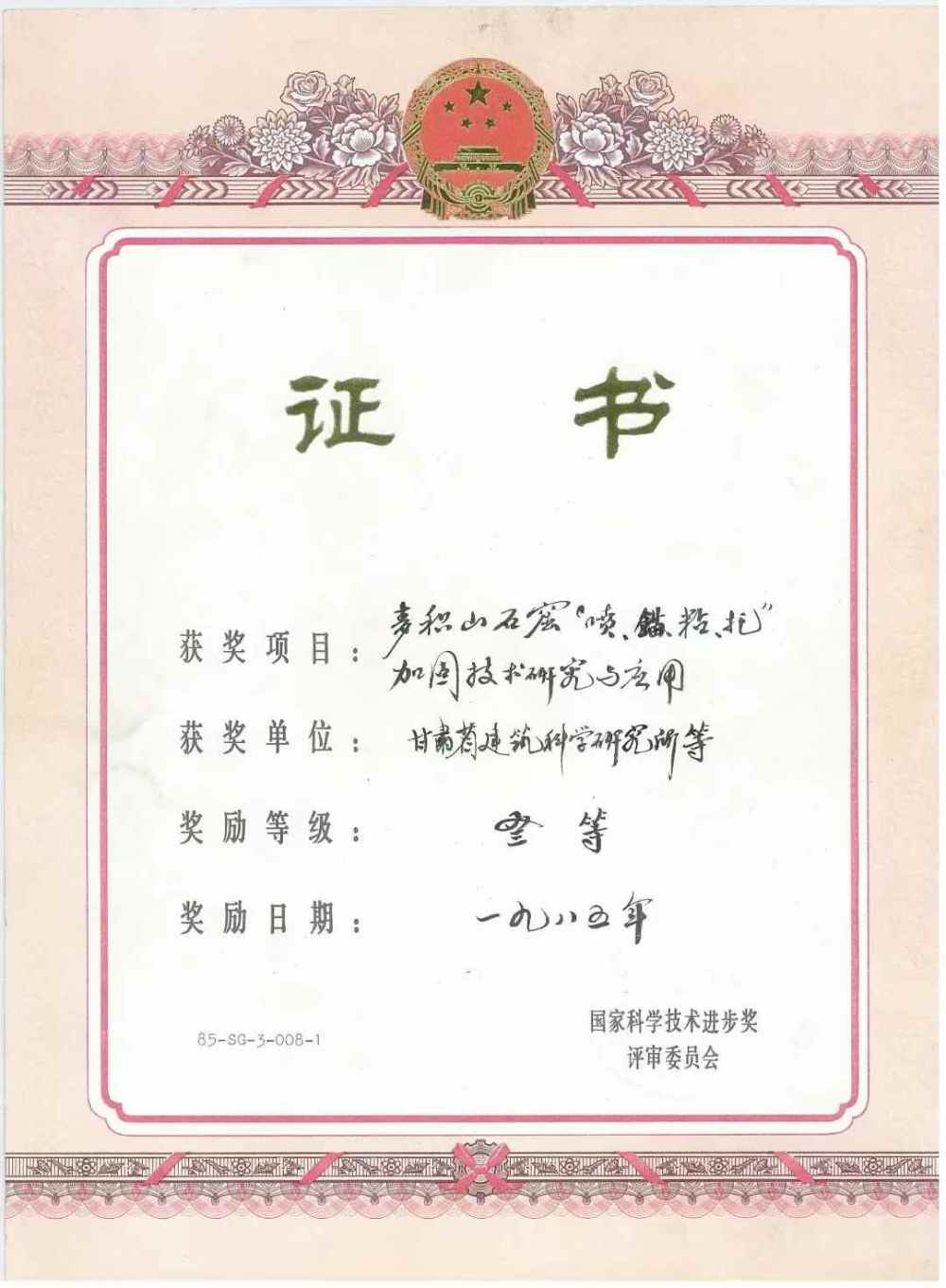 鑒定認為,麥積山石窟維修加固工程在總結(jié)了國內(nèi)巖體加固經(jīng)驗的基礎(chǔ)上,結(jié)合麥積山石窟巖體的特點和不改變原狀的原則,成功地采用了“噴、錨、粘、托”綜合加固技術(shù),為保護石窟文物開創(chuàng)了一條新的途徑。1985年,甘肅建科院榮獲國家科技進步獎三等獎、甘肅科技成果獎二等獎。