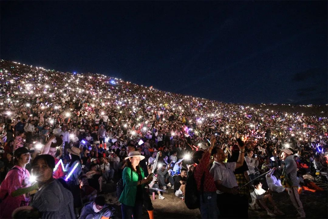 穿越時空,最近鳴沙山月牙泉大漠星空演唱會的持續(xù)火爆,吸引了無數(shù)游客前來“打卡”,浩瀚的星空、鮮艷的國旗、閃耀的燈光交相輝映,掀起了一輪又一輪音樂熱潮。
