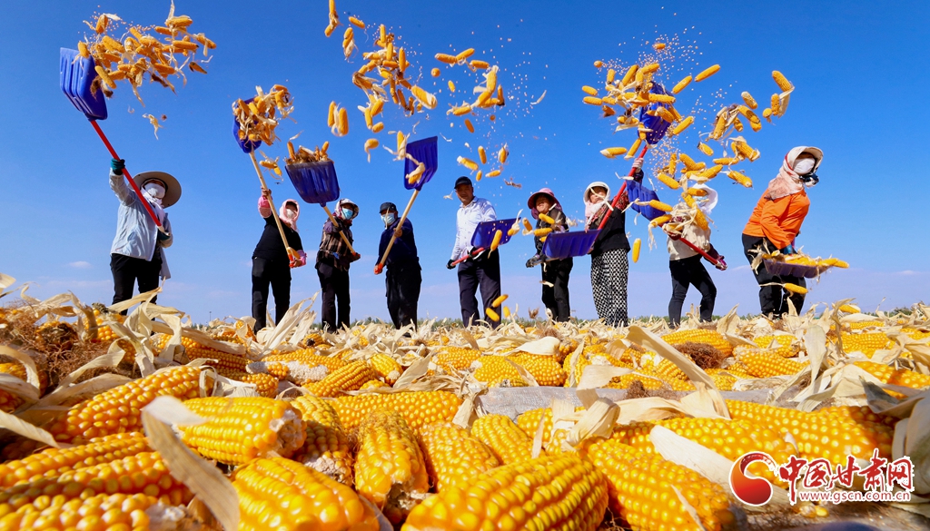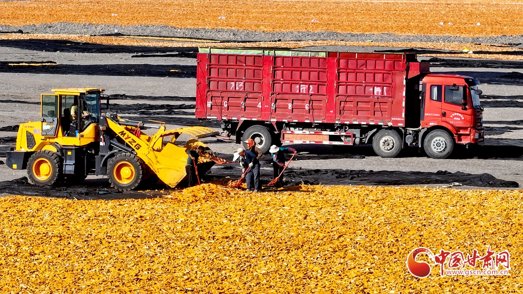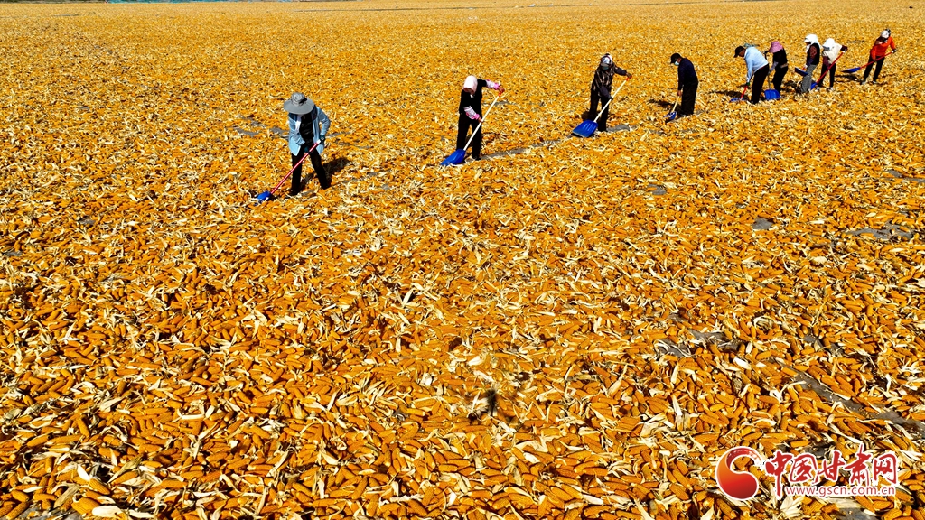 金秋時節(jié),張掖市種植的120.7萬畝制種玉米喜獲豐收。9月17日,甘州區(qū)明永鎮(zhèn)夾河灘等多個玉米晾曬基地一片金黃,制種企業(yè)和農(nóng)戶緊抓晴好天氣,進行晾曬和加工,晾曬場上呈現(xiàn)出“金色海洋”般豐收忙碌的喜人景象。