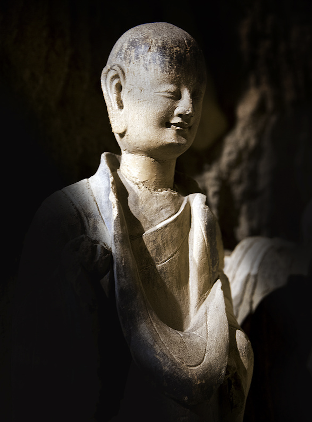 麥積山石窟始建于384-417年,現(xiàn)存有221座洞窟、10632身泥塑石雕、1300余平方米壁畫。麥積山石窟的獨特之處在于,雕塑的人物形象沖破了佛像造型的固有風格,不再莊重嚴肅,更加貼近生活,充滿人間溫度。