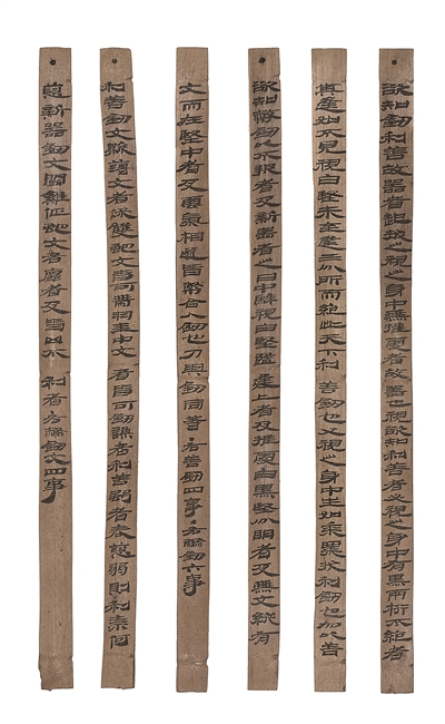 《相利善弊劍冊(cè)》(見(jiàn)圖)出土于甲渠候官遺址內(nèi),共6簡(jiǎn),約210字,規(guī)整隸書(shū),墨色如新。該簡(jiǎn)提出了古人辨識(shí)寶劍的一些方法和標(biāo)準(zhǔn),對(duì)研究漢代的金屬冶煉和兵器制造具有重要意義。