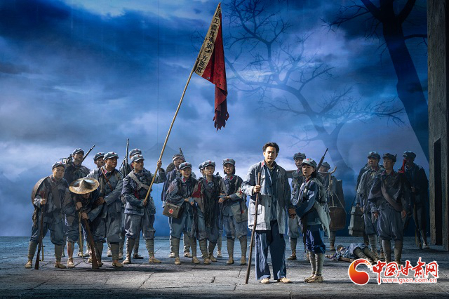 該劇以紅軍長征途經(jīng)甘肅哈達(dá)鋪的重要?dú)v史事件為背景,通過藝術(shù)化的舞臺呈現(xiàn),生動展現(xiàn)了革命先輩的堅(jiān)定信念與偉大精神。全劇通過人物群像與歷史瞬間的交織,彰顯信仰力量與軍民深情,以時空交織的敘事結(jié)構(gòu),穿插毛澤東與周恩來回憶對話的閃回場景,通過“序—八場—尾聲”的結(jié)構(gòu),串聯(lián)紅軍在哈達(dá)鋪的休整與決策過程,兼具歷史縱深感與戲劇張力。