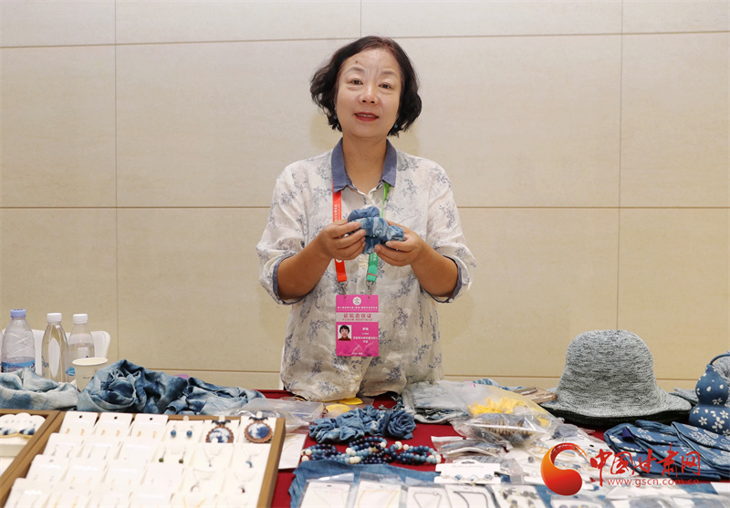 在第八屆進(jìn)博會的現(xiàn)場,甘肅館以其獨(dú)特的人文底蘊(yùn)吸引了眾多目光。展館內(nèi),弧形山脈造型的背景,仿佛展現(xiàn)著甘肅的壯美風(fēng)光,而慶陽香包、敦煌絲巾等精美展品,則如璀璨明珠,訴說著甘肅的文化魅力。就在這其中,來自平?jīng)龅墓欧ㄋ{(lán)染技藝展臺格外引人注目,一件件藍(lán)染作品散發(fā)著獨(dú)特的草本氣息,向世界展示著非遺的獨(dú)特魅力,而這些作品的創(chuàng)作者,正是平?jīng)鏊{(lán)染技藝的市級非遺傳承人李梅。