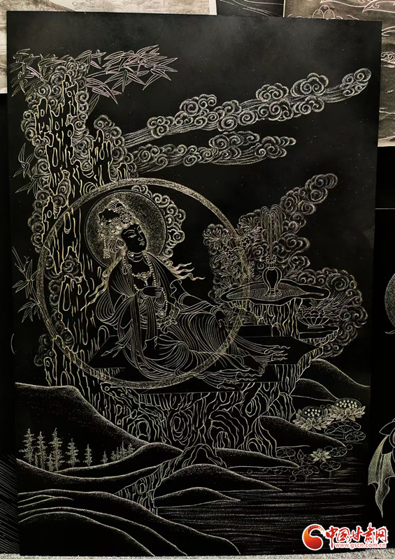 對(duì)張兆武來(lái)說(shuō),做鍥金畫從來(lái)不是“照貓畫虎”。他琢磨傳統(tǒng)書(shū)畫的筆墨、篆刻的力道,慢慢攢出了自己的一套刀法;創(chuàng)作時(shí),心里裝的也全是敦煌——從莫高窟第112窟里“反彈琵琶”的靈動(dòng)舞姿,到傳說(shuō)中“九色神鹿”的溫潤(rùn)模樣,都成了他刻刀下的主角。他刻出的飛天,飄帶像帶著風(fēng);刻出的菩薩,眉眼間透著莊重;金屬的光澤在畫面上流轉(zhuǎn),明明是靜態(tài)的畫,卻像在講一段活的敦煌故事。“不用多說(shuō)什么,看過(guò)的人能懂這份美。”張兆武說(shuō)的這份“懂”,恰恰打破了文化和語(yǔ)言的距離,讓東方的古老美學(xué),和全世界的現(xiàn)代審美碰出了共鳴。