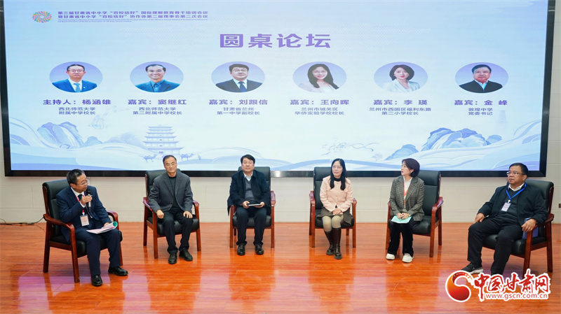 圓桌論壇環(huán)節(jié),西北師范大學(xué)第二附屬中學(xué)校長竇繼紅、蘭州一中副校長劉跟信等校領(lǐng)導(dǎo)圍繞“AI時代國際理解教育”展開熱烈研討,碰撞出諸多創(chuàng)新思路;項(xiàng)目學(xué)校代表分組討論,明確了下一步發(fā)展目標(biāo),為“百校結(jié)好”項(xiàng)目深化推進(jìn)凝聚共識與合力。