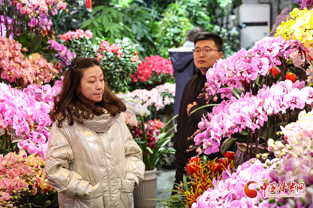 春節(jié)臨近,蘭州市各大花卉市場年宵花迎來銷售旺季。1月31日,在城關(guān)區(qū)芳草園花卉市場,各色蝴蝶蘭被擺在店鋪C位,繽紛色彩相互交織,與冬青、金桔搭配出滿滿年味。不少市民專門前來挑選蝴蝶蘭,希望將這份美好寓意帶回家中,用盛放的鮮花點亮新春,也讓年味更加飽滿溫馨。