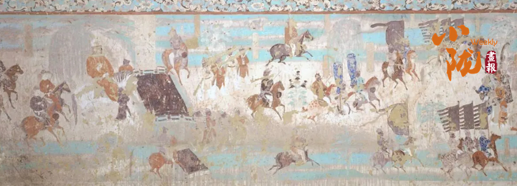 在甘肅璀璨的石窟藝術(shù)中,馬早已超越了具象的生靈,化作融入筆墨丹青的文化靈韻。莫高窟的壁畫(huà)里,馬的形象栩栩如生、各具風(fēng)情:西魏249窟的青藍(lán)色翼馬,肩生雙翼、身姿輕盈,與仙人并肩起舞,藏著古人對(duì)天空與自由的向往;晚唐12窟的作戰(zhàn)圖中,戰(zhàn)馬披甲馳騁、泅水掙扎,真實(shí)還原了古戰(zhàn)場(chǎng)的慘烈與悲壯;盛唐時(shí)期的駿馬畫(huà)像,體態(tài)雄壯、氣度軒昂,每一筆勾勒都藏著時(shí)代的審美與家國(guó)情懷。