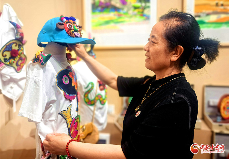 趙星萍的藝術創(chuàng)作扎根鄉(xiāng)土,從剪紙系列起步,拓展至創(chuàng)意香包,如今又融合剪紙、香包、刺繡、布貼畫等傳統(tǒng)技藝,開發(fā)出香包童裝T恤、刺繡帽子、剪紙臺燈等特色文創(chuàng)產(chǎn)品。其作品既傳承了隴東大地簡潔明快的藝術基因,又展現(xiàn)出新時代的創(chuàng)新活力。