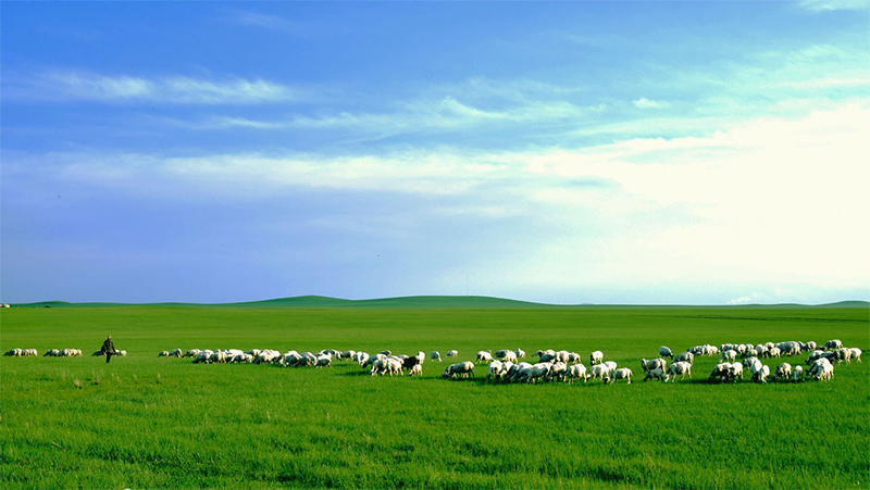 鐵絲圍欄的那一邊,幾頭牛正享受著午后的陽光。它們有的在草地上漫步,有的臥在草地上打瞌睡。一只兔子從它們面前跑過,它們沒有挪動身體,只是看了兔子一眼,就接著專注于自己的世界了。牛尾巴耷拉在身后,偶爾慢悠悠地甩起來,驅(qū)趕剛剛落在身上的飛蟲。藍藍的天上有幾朵碎云,它們也和貢格爾草原上的牛羊一樣慢慢地走著,并沒有什么事讓它們著急。