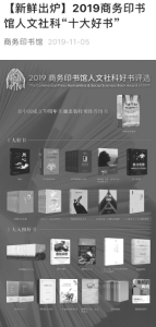 “商務(wù)印書館人文社科好書評(píng)選”被中央電視臺(tái)等媒體稱為“年度圖書榜單風(fēng)向標(biāo)”。每每公布后,央媒及主流媒體都會(huì)予以報(bào)道,同時(shí)在新媒體平臺(tái)也會(huì)進(jìn)行系列宣傳,比如2019年的好書評(píng)選人民日?qǐng)?bào)官方微信發(fā)布后一天內(nèi)的閱讀量便超過(guò)了888萬(wàn)。