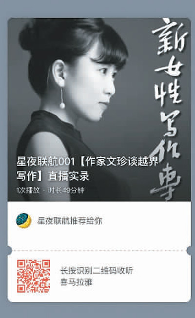 碼字人書店則聯(lián)合書萌、做書、小眾書坊、林贊說、生活便簽等書店、圖書策劃、影像文化品牌和推廣機(jī)構(gòu),借助文化出版機(jī)構(gòu)的支持,共同推出“星夜聯(lián)航”,在全國書店、文藝社群線上同步直播。李蘇皖告訴本報(bào)記者,3月的主題是“女性·生長”。3月7日晚第一期,女作家文珍做線上分享會(huì)“我的閱讀和越界寫作”,當(dāng)天有41個(gè)書店及社群、近萬人參與;第二期3月14日晚,詩人里所線上分享“寫作時(shí)是否要在意女性身份”,參與的書店和社群增加到69個(gè)。