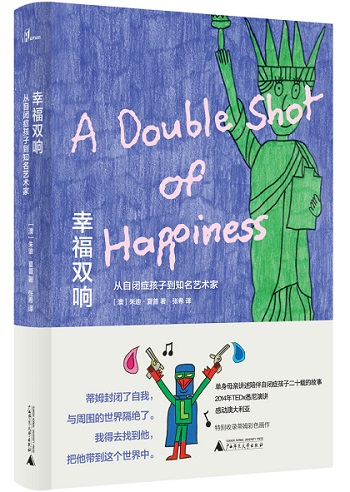 書名《幸福雙響》(A Double Shot of Happiness),來自蒂姆最愛的創(chuàng)作之一。朱迪用優(yōu)美且感人肺腑的筆觸,訴說著蒂姆漫長的人生旅程——從被診斷為重度自閉癥患者到嶄露頭角成為備受推崇的藝術家,以及一個能夠愛人與被愛的年輕人。