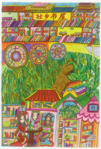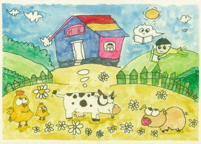 面對這部由中國少年兒童新聞出版總社出版的《“我的書屋·我的夢”——2019年農(nóng)村少年兒童閱讀實踐活動優(yōu)秀作品集》,讓人欣喜的是,它不但有文字,還有很多入選的畫作,孩子們運用了大膽的色彩、大膽的想象、大膽的線條,恣肆地描繪著他們的夢和憧憬,這些夢根植于他們生活的山鄉(xiāng)曠野,又呼應(yīng)著遠(yuǎn)方、星辰與大海。我尤其記得其中的一幅,那是一座高聳的書塔,那種拔地而起、直上云霄的氣勢,是一種象征,是一種隱喻,是這一代孩子想站到巨人肩上的渴望,是他們對祖國明天最美好的祝福和期待,也是中華民族必將走向復(fù)興的昭示。