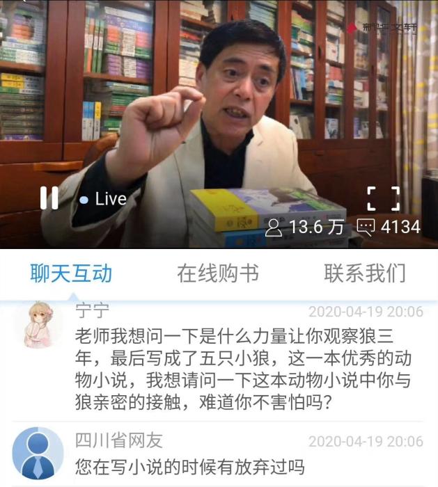 時(shí)間的指針再往回?fù)埽饲?,作家沈石溪開(kāi)啟直播形式的線(xiàn)上課程,累計(jì)有超過(guò)14萬(wàn)人觀看,當(dāng)天他的作品《狼王夢(mèng)》賣(mài)出1萬(wàn)多冊(cè),碼洋超過(guò)30萬(wàn)元。