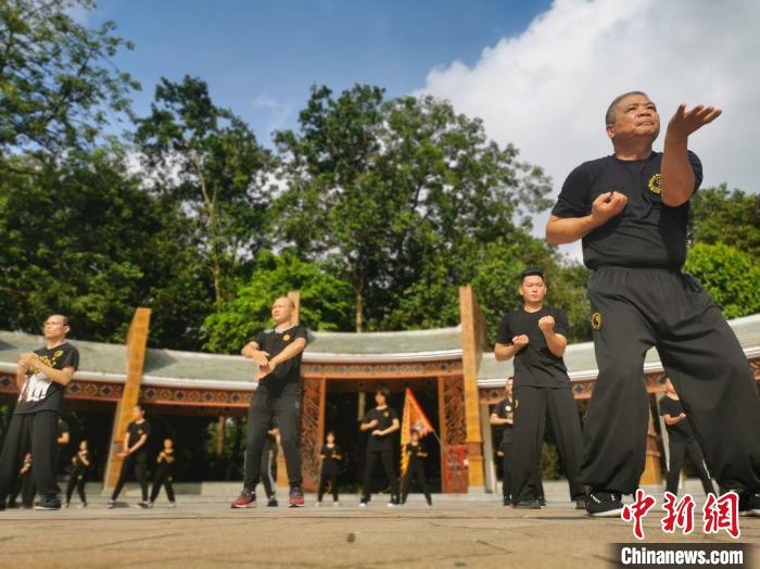 佛山市政府今年印發(fā)了《佛山市加快建設(shè)“世界功夫之城”實(shí)施方案》,各區(qū)大力推進(jìn)武術(shù)發(fā)展平臺建設(shè),圖為當(dāng)?shù)靥厣?ldquo;廣場武”?!?yīng)妮 攝