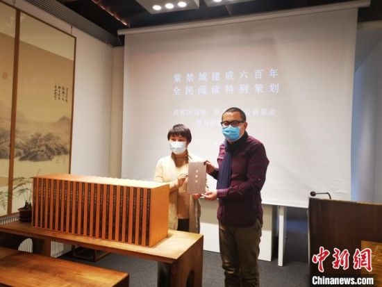 中新網(wǎng)北京12月28日電 (記者 應妮)“故宮出版社攜手新浪揚帆公益基金圖書捐贈發(fā)布會”28日在故宮博物院紫禁書院舉行。故宮出版社精選39種圖書共7800冊,由新浪揚帆公益基金定向捐贈給貴州、甘肅等省貧困山區(qū)的200所學校。這些圖書包括《故宮畫譜》系列、《故宮藏畫的故事》《千里江山圖的故事》《清明上河圖的故事》等,內容涉及600年的紫禁城歷史、人物、建筑及院藏珍品介紹等多方面。