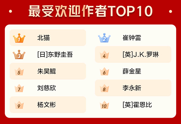 這些搜索熱詞同樣帶動(dòng)了相關(guān)圖書(shū)的銷(xiāo)售。兒童書(shū)作家北貓和崔鐘雷成為京東圖書(shū)2020年最受歡迎作者的第一名和第二名。在“哈利·波特”和“三體”成為熱搜詞的同時(shí),作家J.K.羅琳和劉慈欣也入圍京東圖書(shū)2020年最受歡迎作者TOP10。
