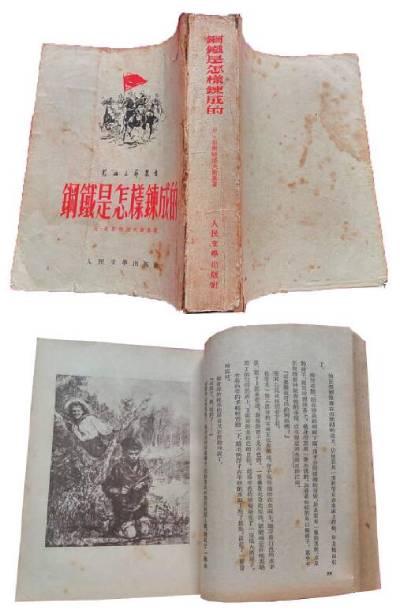 不同版本的梅益譯《鋼鐵是怎樣煉成的》封面與封底