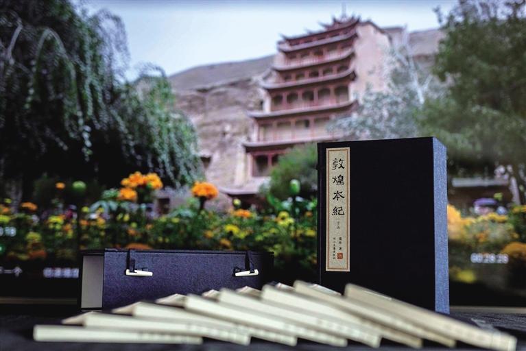 兩個月后,我如愿以償?!抖鼗捅炯o》繁體線裝本(限量版)出品,兩函,每函八冊,總計十六冊,繁體豎排,全手工裝訂。技藝之美,工序之繁,裝幀之考究,未之見過!當我打開拿到手上時肅然起敬,自然會靜下來,恭恭敬敬翻閱,你能感受到甘肅豐富的歷史文化資源、厚重的文化積淀和波瀾壯闊的滄桑巨變。正是偉大的藝術和同樣偉大的宗教,在敦煌建筑了人類精神的輝煌莫高窟,人們生活在其中,才擁有現(xiàn)實人生意義的充實感和踏實感。