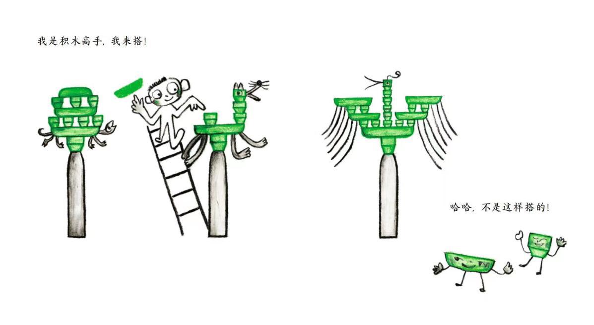 兒童蠟筆涂鴉式的拙趣畫風(fēng),配合生動(dòng)鮮活、天真質(zhì)樸的畫面,處處透著童真,更加符合孩子的審美趣味。透過簡單童趣的意象,孩子可以展開更多天馬行空的想象,給創(chuàng)新創(chuàng)造能力插上自由的翅膀。