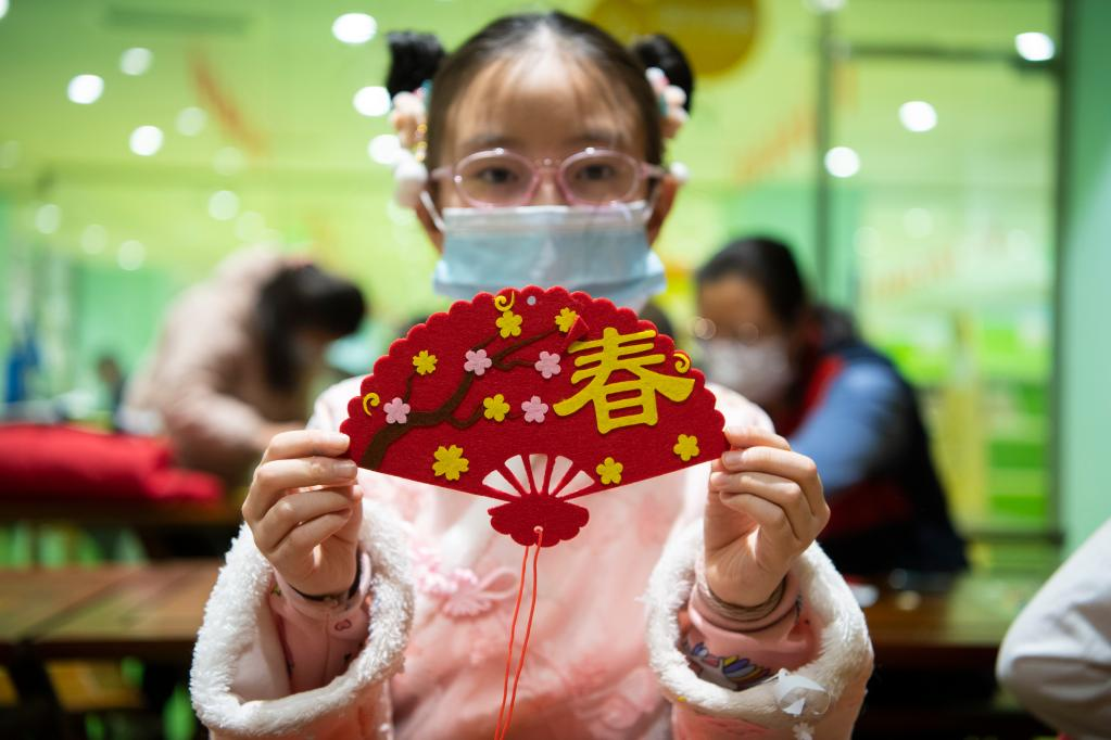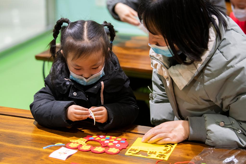 2月6日,小朋友和家長在太原市圖書館參加“巧手迎新春”手工DIY活動。