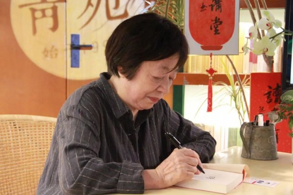 2020年楊本芬在青苑書店為讀者簽名