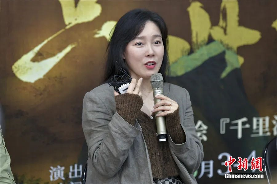 《只此青綠》總編導(dǎo)周莉亞今年3月3日在??诮邮苊襟w采訪。中新社記者 駱云飛 攝
