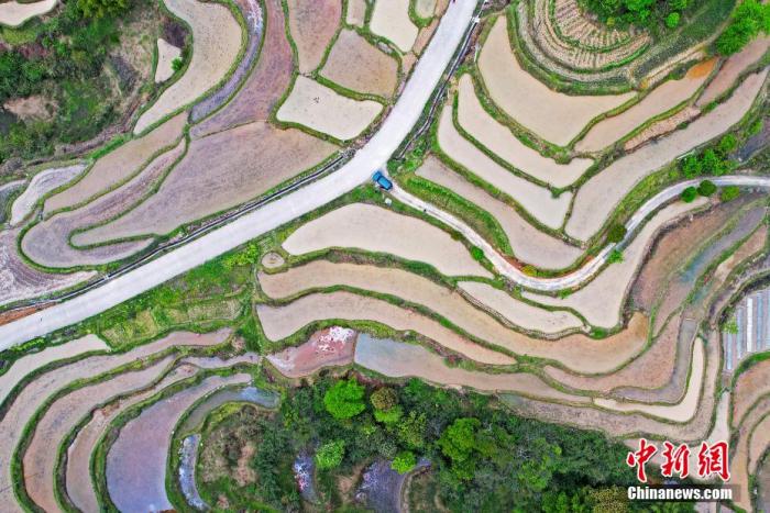 資料圖:春耕時節(jié)彎彎曲曲的梯田。 黃河 攝