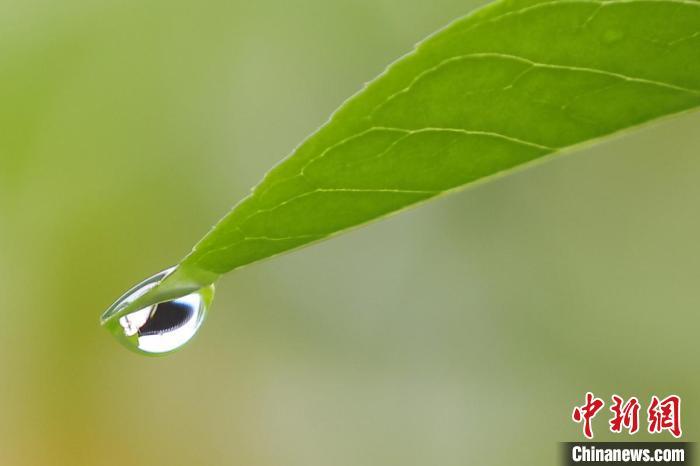 資料圖:樹葉上的雨滴晶瑩剔透。泱波 攝