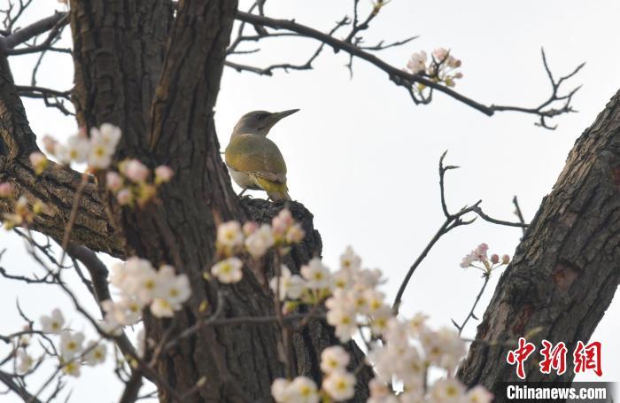 資料圖:鳥兒在梨樹枝頭停留。劉峰 攝