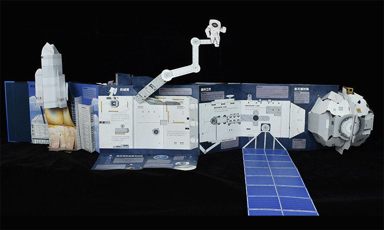 圖為《繁星作伴好還鄉(xiāng):空間站全景立體書》展開側(cè)面圖