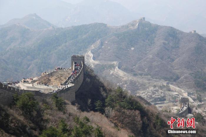 資料圖:清明小長(zhǎng)假,北京八達(dá)嶺長(zhǎng)城景區(qū)春意濃。 中新社記者 韓海丹 攝
