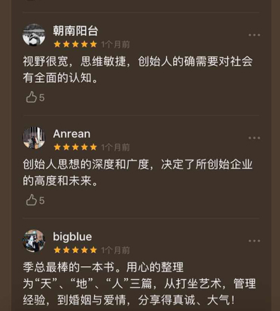 這本書可以讓讀者了解具有代表性的中國(guó)60后企業(yè)家的不同面向,既能從季琦的成功經(jīng)驗(yàn)中獲取養(yǎng)分,也能從他的人生哲學(xué)和生活美學(xué)里汲取能量。