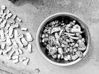 在縣城唯一的山珍市場內,專營蘑菇的個體戶不急不躁地守著攤位,面前是一堆堆清早收購來的散發(fā)著泥土芬芳的各色蘑菇……專程趕來的當?shù)厥晨突蚺紶柭愤^的外地游客,看著如此新鮮的蘑菇,都會買上個十斤八斤,回去后用保鮮袋分裝在冰箱里隨吃隨拿,或者曬成干蘑菇吃得長久些。個頭大的切成薄片,晾曬在水泥地上;個頭小的用線串成串兒,掛在太陽下暴曬,幾天就好——若遇到陰天,也可以掛在爐火上熏烤。干蘑菇把山野里的芳香氣息集于一身,可謂一種脫俗的山珍野味,無論用來招待客人,還是捎帶給遠方的親友,都是非常不錯的選擇。