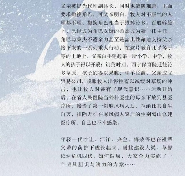 《雪山大地》將青藏高原幾十年來發(fā)生的改天換地,以及以“父親母親”為代表的三代建設者在這片土地上耕耘建設的日日夜夜,展現在讀者面前。人與自然、人與動物、生態(tài)與發(fā)展的主題貫穿始終,全景式地展現了藏族牧民傳統(tǒng)社會形態(tài)和生活樣貌的變遷。