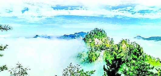 然而,天水石門山的饋贈(zèng)還不止這些。由于石門山地理位置特殊,宜人的氣候經(jīng)常會(huì)造就氣勢磅礴的浩瀚云海。云海平靜時(shí),云霧便在半山腰停住腳步。站在山巔遠(yuǎn)眺,只見腳底下半山腰白霧團(tuán)團(tuán),感覺自己在云山之巔,飄飄欲仙。“不知天上宮闕,今夕是何年?”此情此景,比畫更有靈氣,比詩更具意境。置身其中,感覺空氣都被浸潤得芳香四溢,令人心曠神怡。