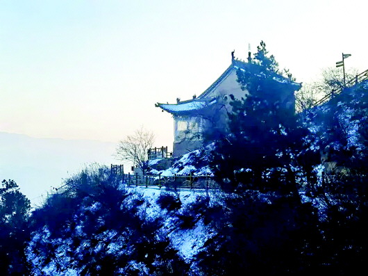 白雪覆蓋著天地間的一切喧囂,此時(shí),朝著山門向上望去,通天梯沒(méi)入天際,天與山的交界處一片蒼茫,分不清是云是煙,似乎上面真是仙境,讓人忍不住想要探尋。