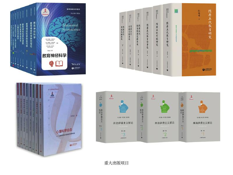 上教社密切關(guān)注新時(shí)代教育發(fā)展的重大理論問(wèn)題與現(xiàn)實(shí)問(wèn)題,響應(yīng)國(guó)家教育發(fā)展戰(zhàn)略需求,精心布局學(xué)術(shù)專業(yè)出版“大項(xiàng)目”,連續(xù)入選國(guó)家重點(diǎn)出版物出版規(guī)劃、2013—2025年國(guó)家辭書編纂出版規(guī)劃,獲國(guó)家出版基金資助。這其中除前文中的大型??乒ぞ邥?,還包括一系列教育與心理學(xué)原創(chuàng)研究和前沿研究成果:由中國(guó)教育史學(xué)者孫培青編著的“隋唐五代教育與考試研究叢書”,構(gòu)建了反映隋唐五代教育與考試全貌的教育理論體系和文獻(xiàn)資料體系,是中國(guó)教育史學(xué)科建設(shè)的一項(xiàng)學(xué)術(shù)文化積累工程;《中國(guó)課程史》以現(xiàn)代課程理論為分析框架,以歷史線索展現(xiàn)中國(guó)學(xué)校課程的新陳代謝;“教育神經(jīng)科學(xué)譯叢”(9冊(cè))是我國(guó)首個(gè)聚焦教育神經(jīng)科學(xué)這一國(guó)際教育研究前沿領(lǐng)域的學(xué)術(shù)譯介系列;《中國(guó)傳統(tǒng)德育心理學(xué)思想新論》系統(tǒng)挖掘整理中華優(yōu)秀傳統(tǒng)文化中蘊(yùn)含的德育心理學(xué)思想,構(gòu)建中國(guó)特色心理學(xué)話語(yǔ)體系;我國(guó)第一套以大心理學(xué)觀,從本土心理學(xué)視角系統(tǒng)探索和解讀不同形態(tài)心理學(xué)的學(xué)術(shù)系列“心理學(xué)形態(tài)研究系列”(6冊(cè)),全景考察心理學(xué)的命運(yùn)與前途,深入探索中國(guó)本土心理學(xué)的選擇與突破;《弗洛伊德主義新論》(三卷)匯聚國(guó)內(nèi)弗洛伊德主義研究領(lǐng)域的權(quán)威學(xué)者,歷史展現(xiàn)弗洛伊德理論的百年發(fā)展歷程,提供弗洛伊德主義研究的“全景圖”。這些重大出版項(xiàng)目為構(gòu)建中國(guó)特色自主知識(shí)體系,建設(shè)中國(guó)教育學(xué)和心理學(xué)學(xué)科體系、學(xué)術(shù)體系、話語(yǔ)體系發(fā)揮了重要作用。