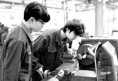 陜西工業(yè)職業(yè)技術(shù)學(xué)院學(xué)生在企業(yè)進(jìn)行實(shí)訓(xùn)。王正攝/光明圖片