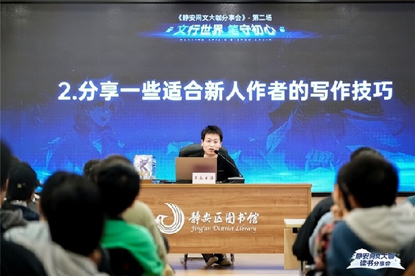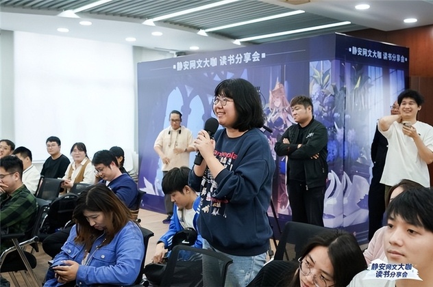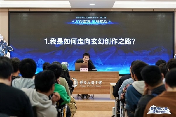 本次分享會再次邀請知名網(wǎng)絡(luò)文學(xué)作家天蠶土豆作為主講嘉賓,與讀者們面對面交流,分享他的寫作技巧和創(chuàng)作趣事,在互動環(huán)節(jié)解答讀者對網(wǎng)絡(luò)文學(xué)作品的好奇?;顒蝇F(xiàn)場熱情積極,在靜安區(qū)圖書館充滿書卷氣的環(huán)境里展現(xiàn)著獨特魅力。