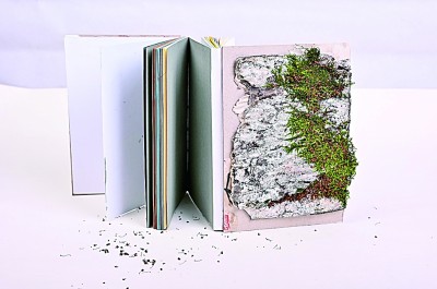 值得一提的是,上述書籍中有許多僅容納了少量文字信息,甚至完全脫離了文本的限制,藝術(shù)家僅借“書”的形式與面貌來傳遞自己的所思所感。這類作品既是書籍,也可看作獨立的藝術(shù)裝置,呈現(xiàn)出書籍裝幀與其他藝術(shù)門類相互融合的發(fā)展趨勢。