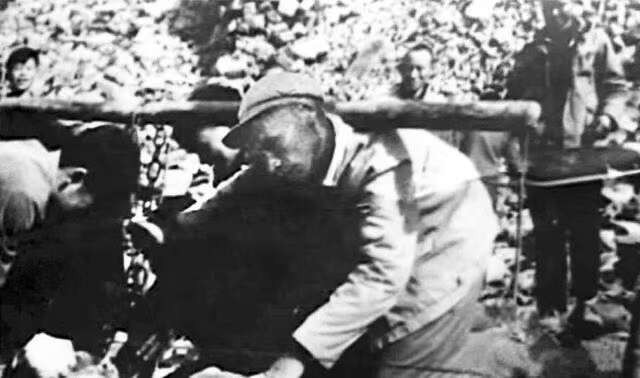 時(shí)任寧化縣隆陂水庫(kù)總指揮的谷文昌(中)與群眾同勞動(dòng),此時(shí)他已經(jīng)55歲。
