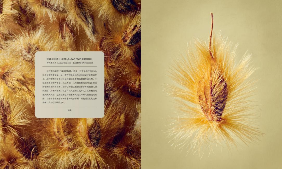 隨后,植物園耗時(shí)6個(gè)月,從3500份標(biāo)本中精心篩選出100種植物果實(shí)與種子。列文·比斯將這些攝影對(duì)象放大至80倍,捕捉到植物表面豐富多樣的細(xì)節(jié),照片的精細(xì)程度超乎想象。每張圖片還配有一段簡(jiǎn)潔的科普文字,不僅反映了100多年來(lái)植物的采集狀況,展示了種子的傳播方式,還介紹了人類對(duì)植物材料的利用方法。