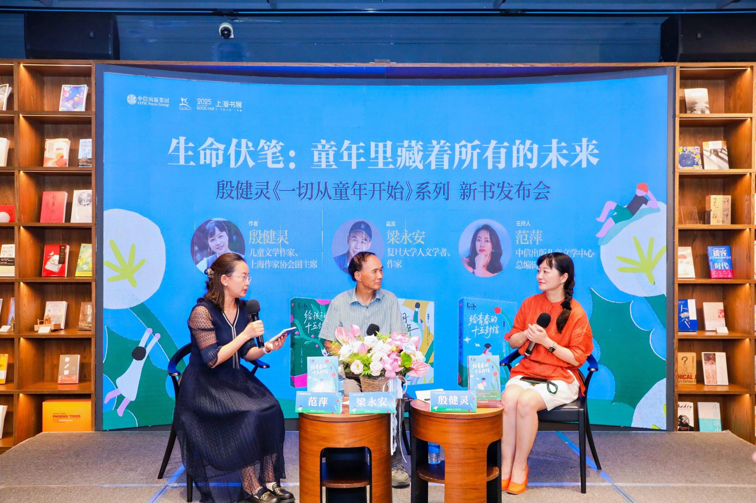 中國青年報客戶端訊(中青報·中青網記者 李丹萍)8月15日,在2025上海書展期間,著名兒童文學作家、“成長擺渡人”殷健靈攜《一切從童年開始》系列新書與讀者見面。本次活動以“生命伏筆:童年里藏著所有的未來”為主題,由中信出版集團聯(lián)合上海書展舉辦,特邀復旦大學人文學者、作家梁永安作為對話嘉賓,和殷健靈共同開啟一場文學與思想的碰撞。