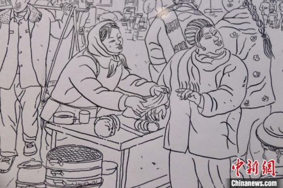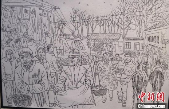 蘭州鋼筆畫愛好者手繪系列“臘月圖”,記錄“集市文化”,留住“年味”以感悟鄉(xiāng)愁。 閆姣 攝